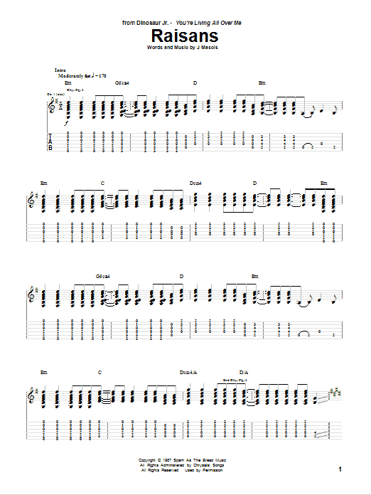 Dinosaur Jr. Raisans sheet music, chords, lyrics - Printable PDF for Guitar Tab
