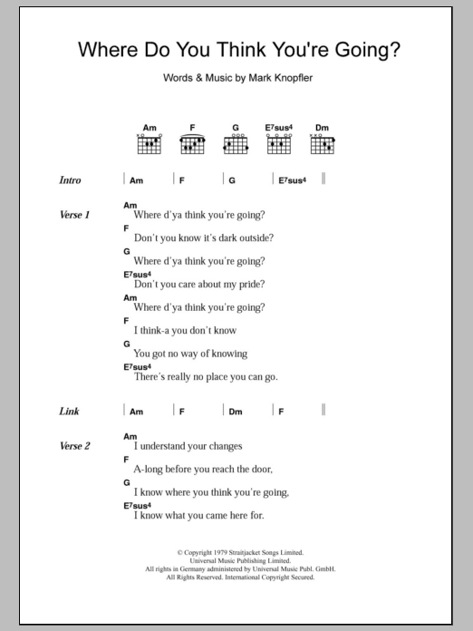 Dire Straits Where Do You Think You're Going sheet music, chords, lyrics - Printable PDF for Lyrics & Chords