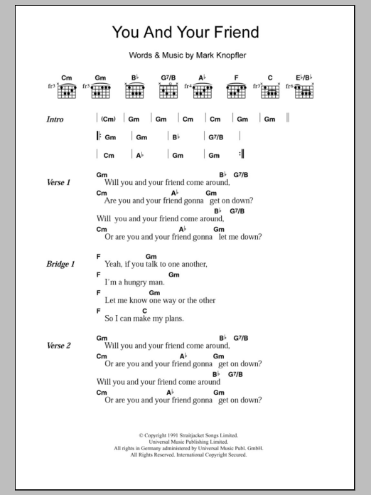 Dire Straits You And Your Friend sheet music, chords, lyrics - Printable PDF for Lyrics & Chords