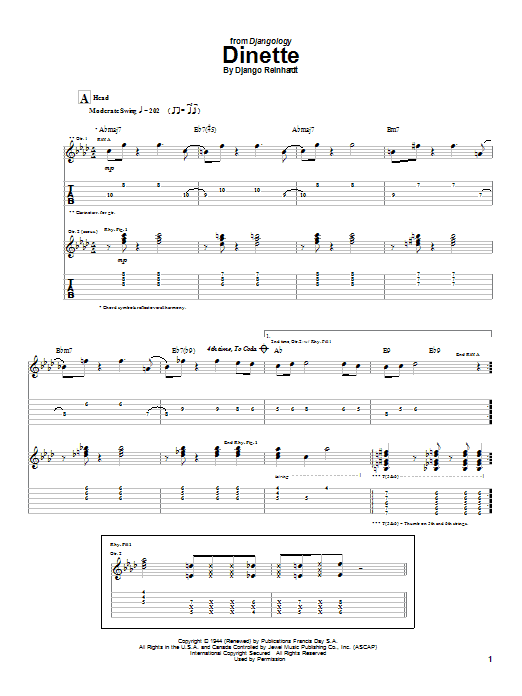 Download 9-Page Django Reinhardt Dinette sheet music | Printable PDF Digital Notes