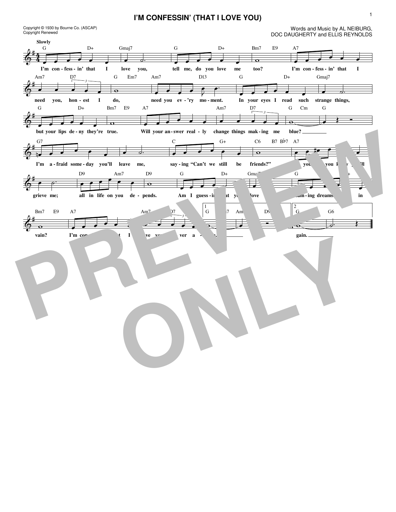 Doc Daugherty I'm Confessin' (That I Love You) sheet music, chords, lyrics - Printable PDF for Melody Line, Lyrics & Chords