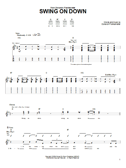 Donavon Frankenreiter Swing On Down sheet music, chords, lyrics - Printable PDF for Guitar Tab