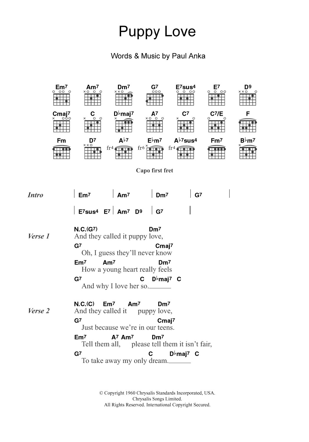 Donny Osmond Puppy Love sheet music, chords, lyrics - Printable PDF for Lyrics & Chords