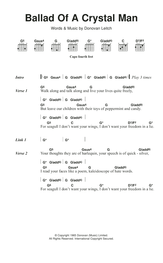 Donovan Ballad Of A Crystal Man sheet music, chords, lyrics - Printable PDF for Lyrics & Chords