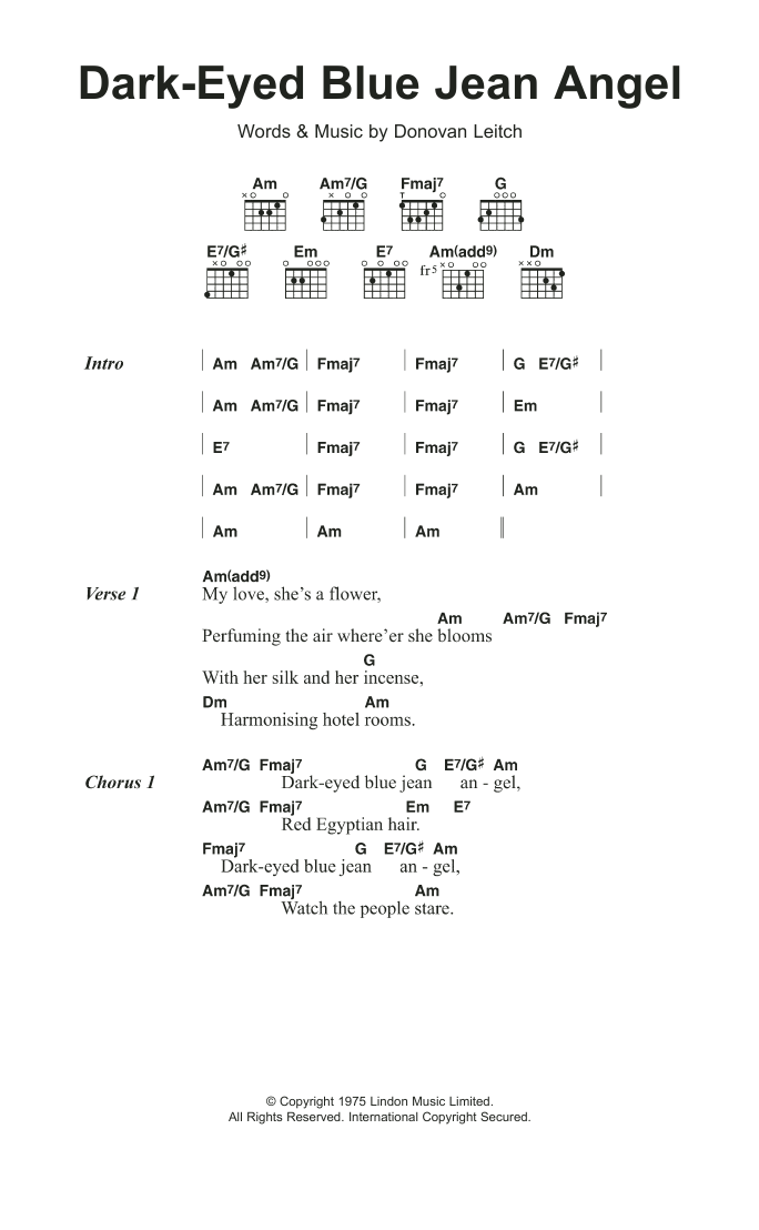 Donovan Dark Eyed Blue Jean Angel sheet music, chords, lyrics - Printable PDF for Lyrics & Chords