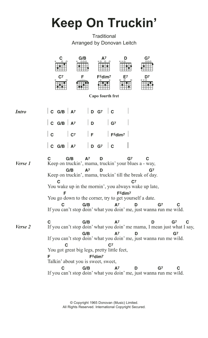 Donovan Keep On Truckin' sheet music, chords, lyrics - Printable PDF for Lyrics & Chords