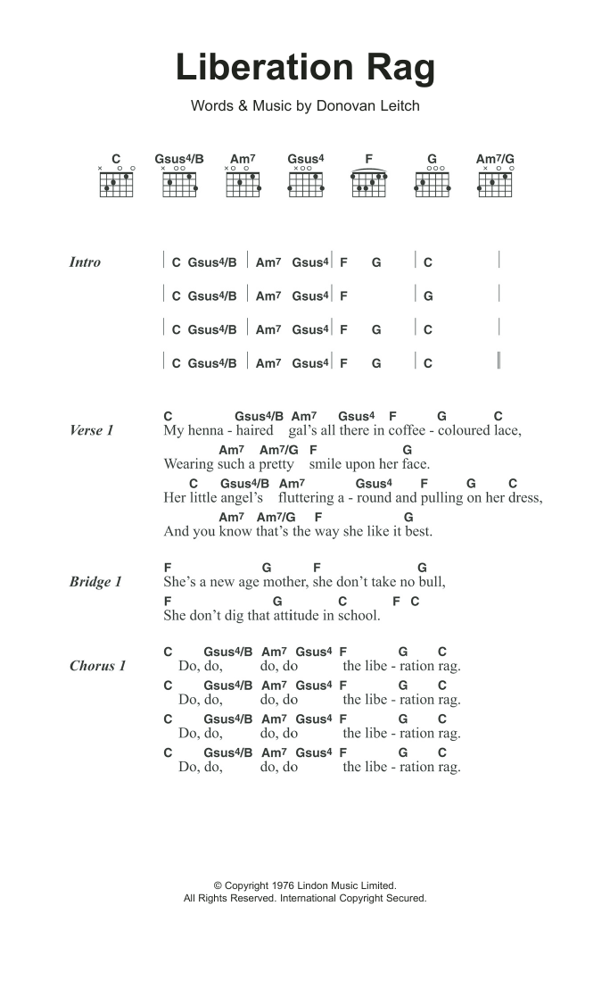 Donovan Liberation Rag sheet music, chords, lyrics - Printable PDF for Lyrics & Chords
