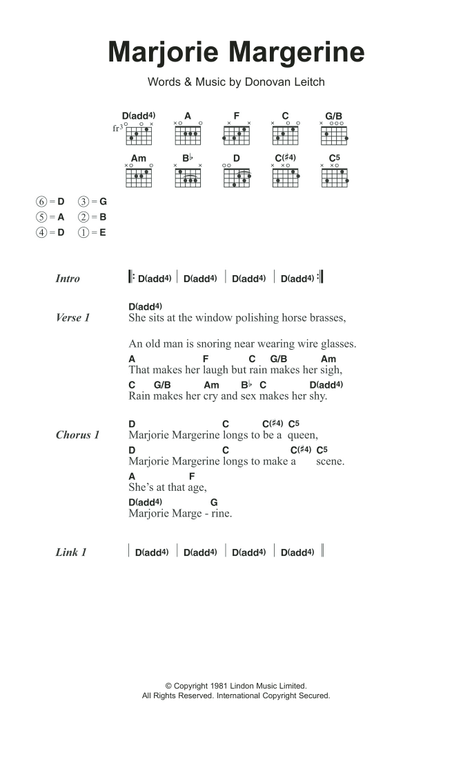 Donovan Marjorie Margerine sheet music, chords, lyrics - Printable PDF for Lyrics & Chords