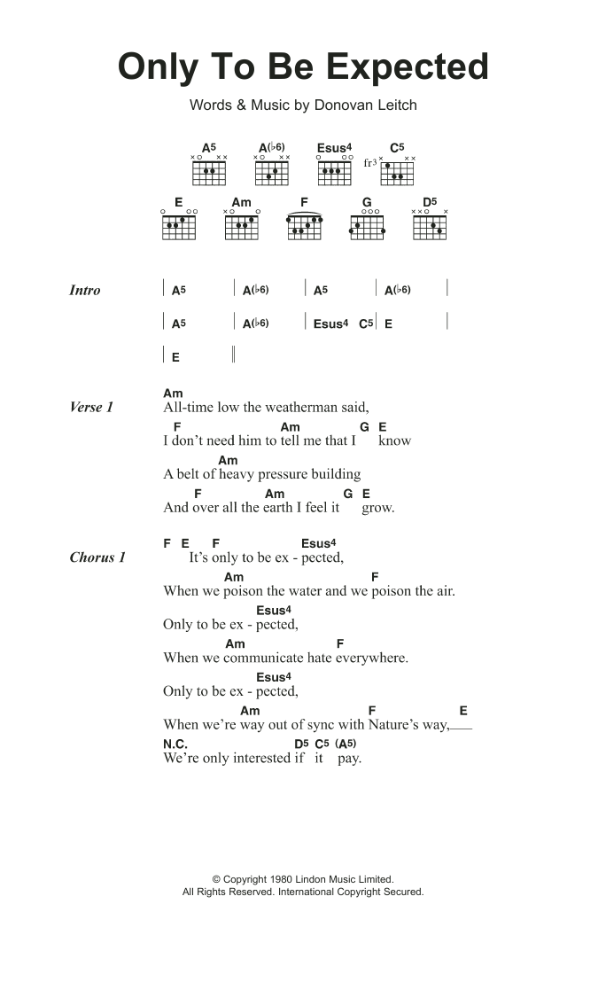 Donovan Only To Be Expected sheet music, chords, lyrics - Printable PDF for Lyrics & Chords