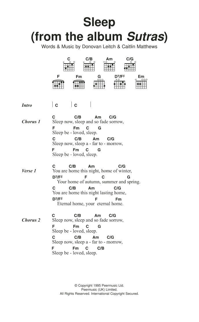 Donovan Sleep (From Album Sutras) sheet music, chords, lyrics - Printable PDF for Lyrics & Chords