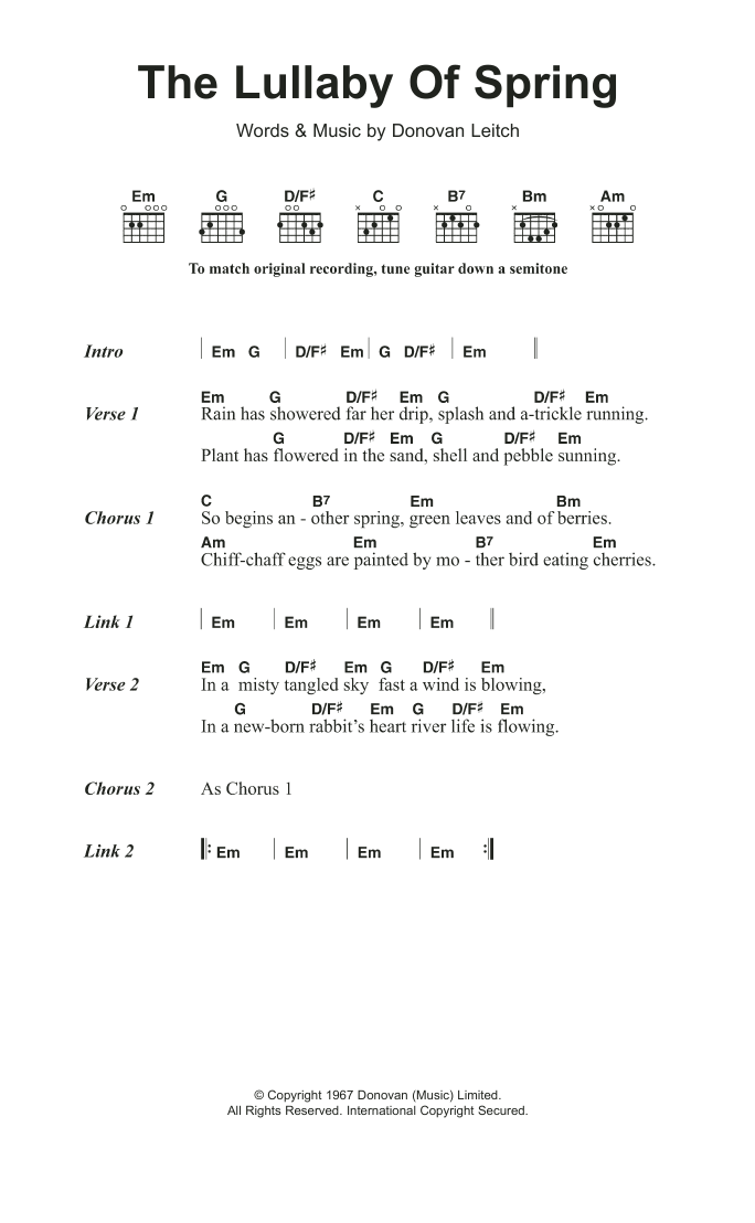 Donovan The Lullaby Of Spring sheet music, chords, lyrics - Printable PDF for Lyrics & Chords