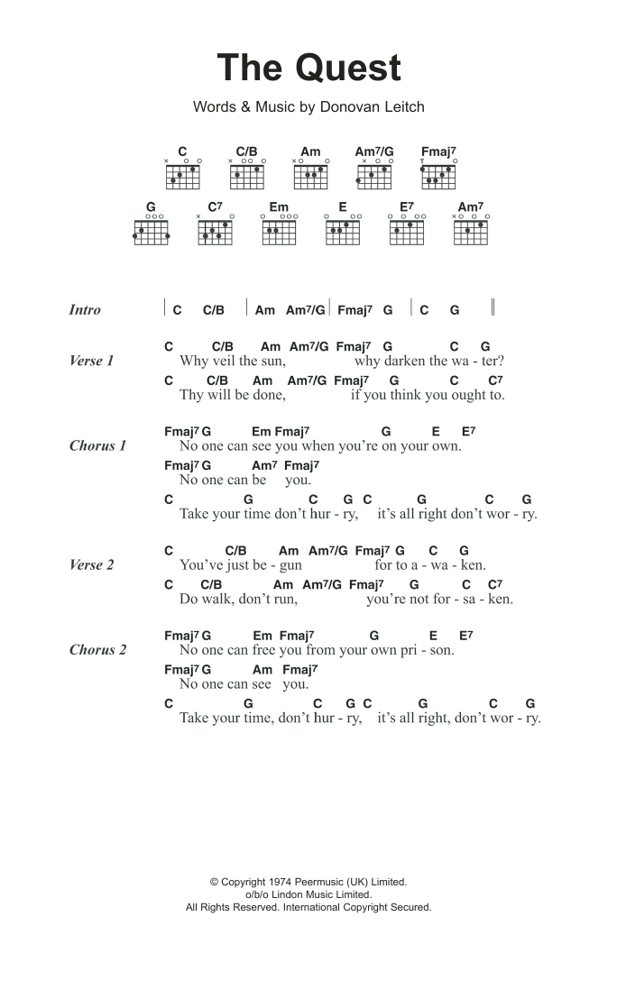 Donovan The Quest sheet music, chords, lyrics - Printable PDF for Lyrics & Chords
