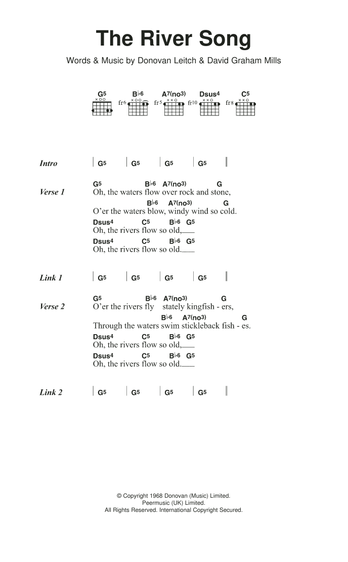Donovan The River Song sheet music, chords, lyrics - Printable PDF for Lyrics & Chords