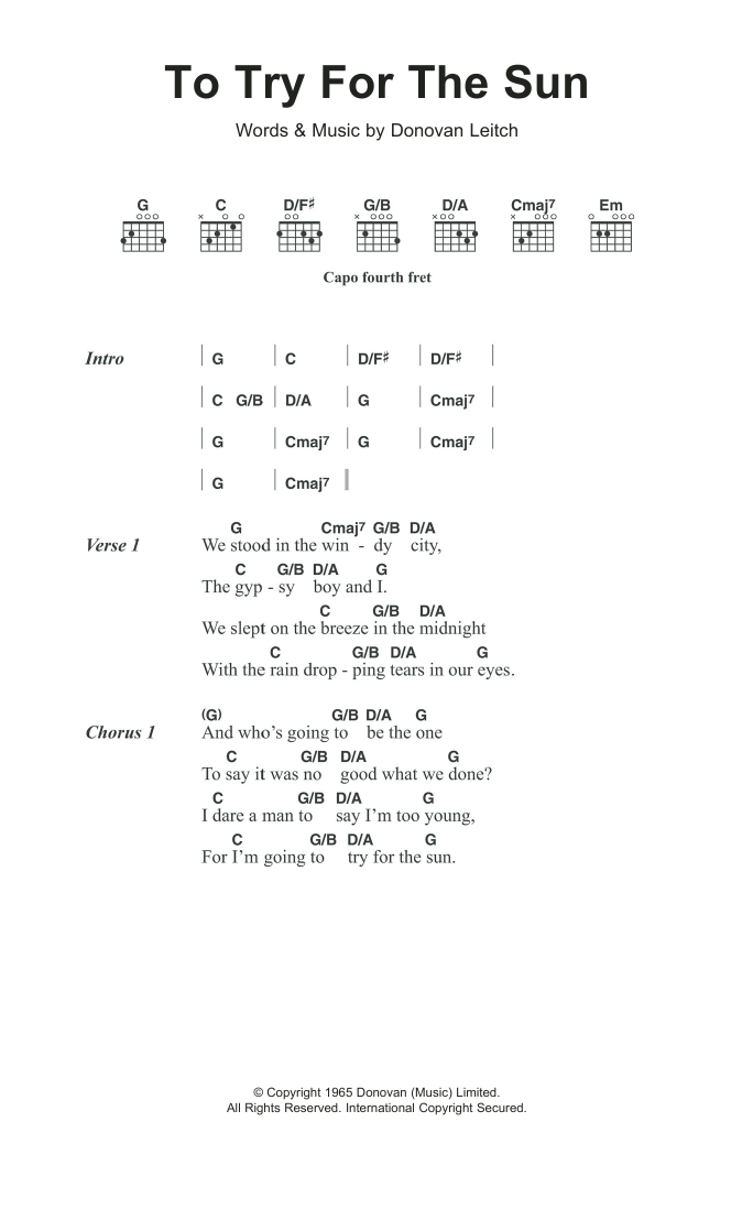 Donovan Try For The Sun sheet music, chords, lyrics - Printable PDF for Lyrics & Chords