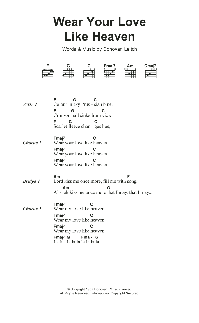 Donovan Wear Your Love Like Heaven sheet music, chords, lyrics - Printable PDF for Lyrics & Chords