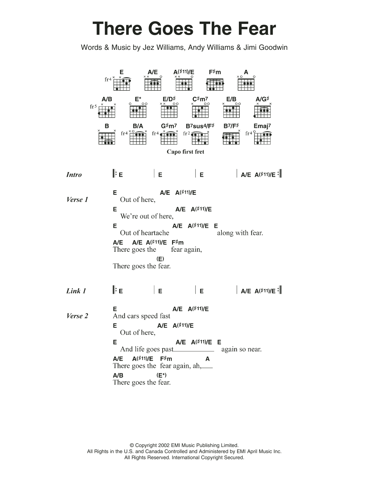 Doves There Goes The Fear sheet music, chords, lyrics - Printable PDF for Lyrics & Chords
