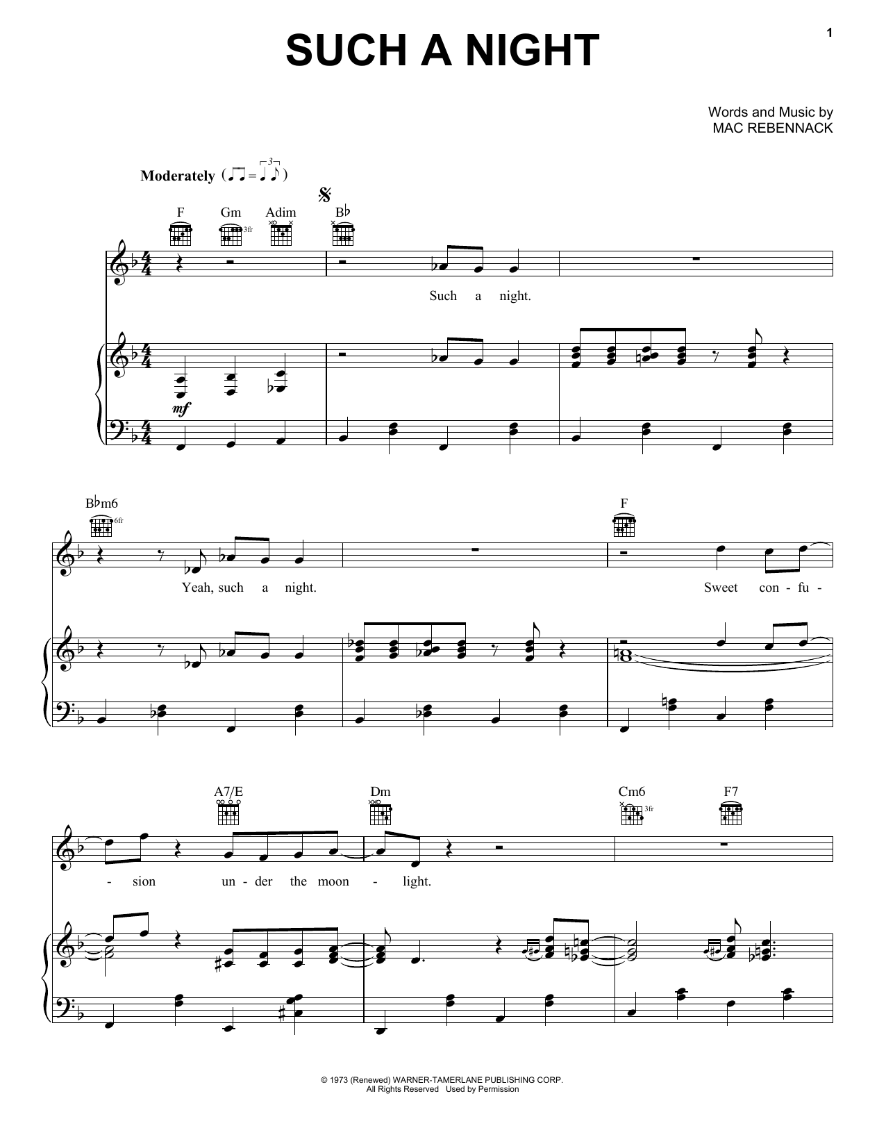Dr. John Such A Night sheet music, chords, lyrics - Printable PDF for Piano, Vocal & Guitar (Right-Hand Melody)
