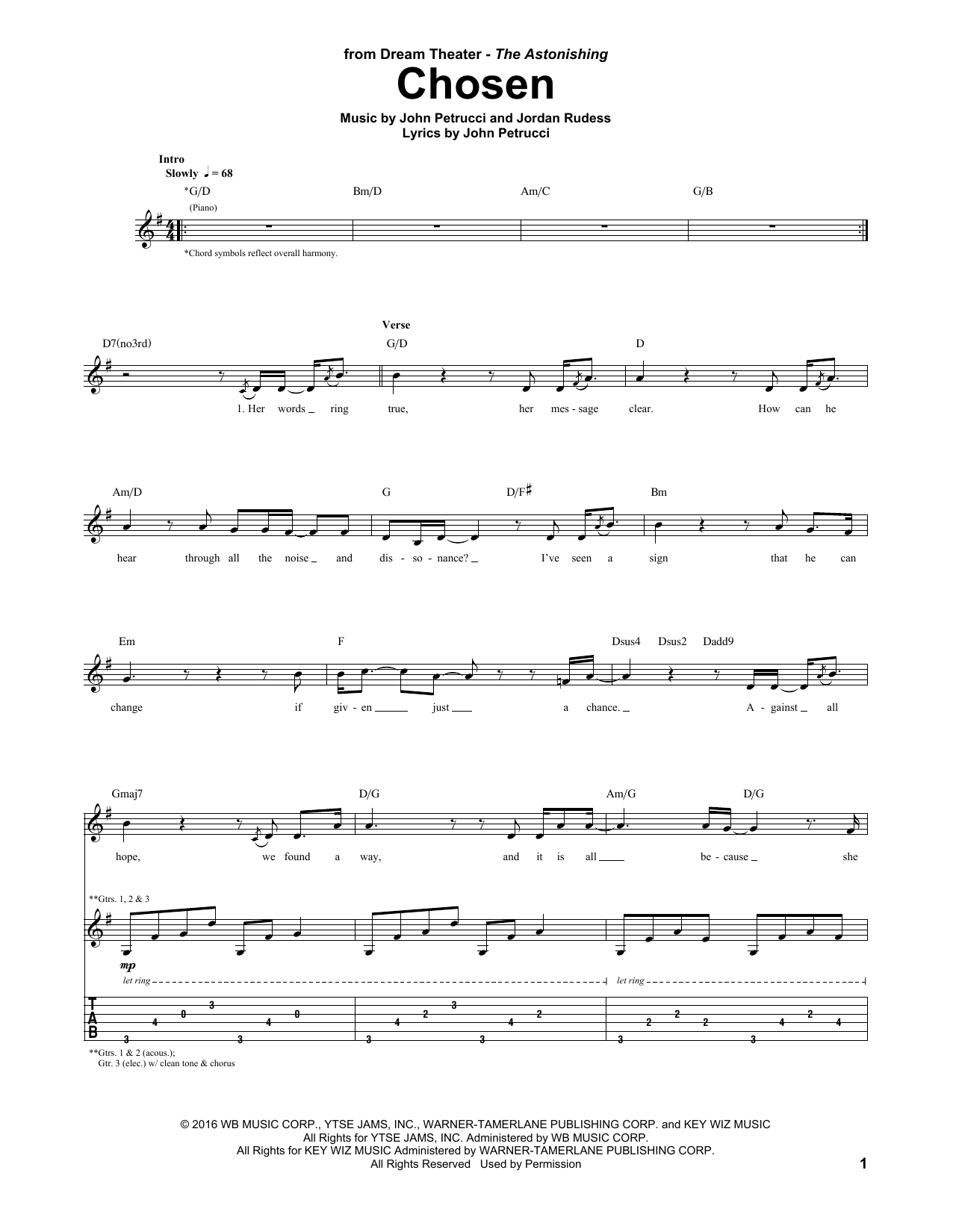 Dream Theater Chosen sheet music, chords, lyrics - Printable PDF for Guitar Tab
