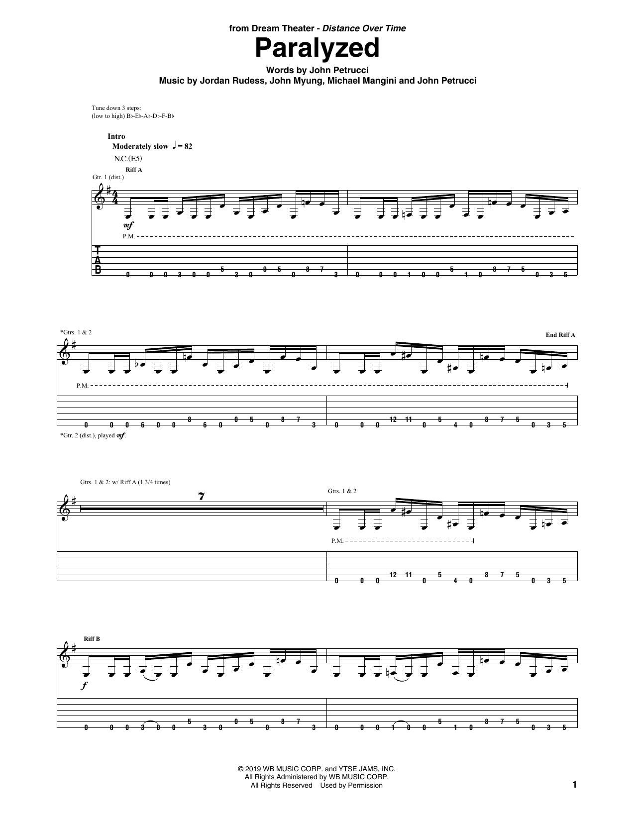 Download 9-Page Dream Theater Paralyzed sheet music | Printable PDF Digital Notes
