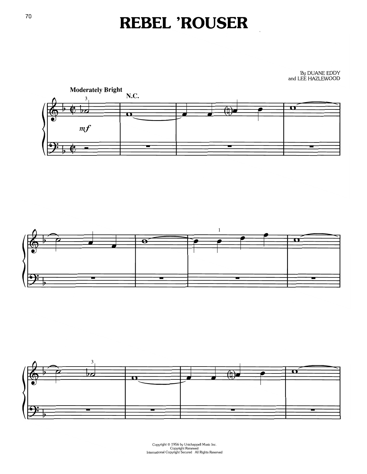 Duane Eddy Rebel 'Rouser (from Forrest Gump) sheet music, chords, lyrics - Printable PDF for Easy Piano