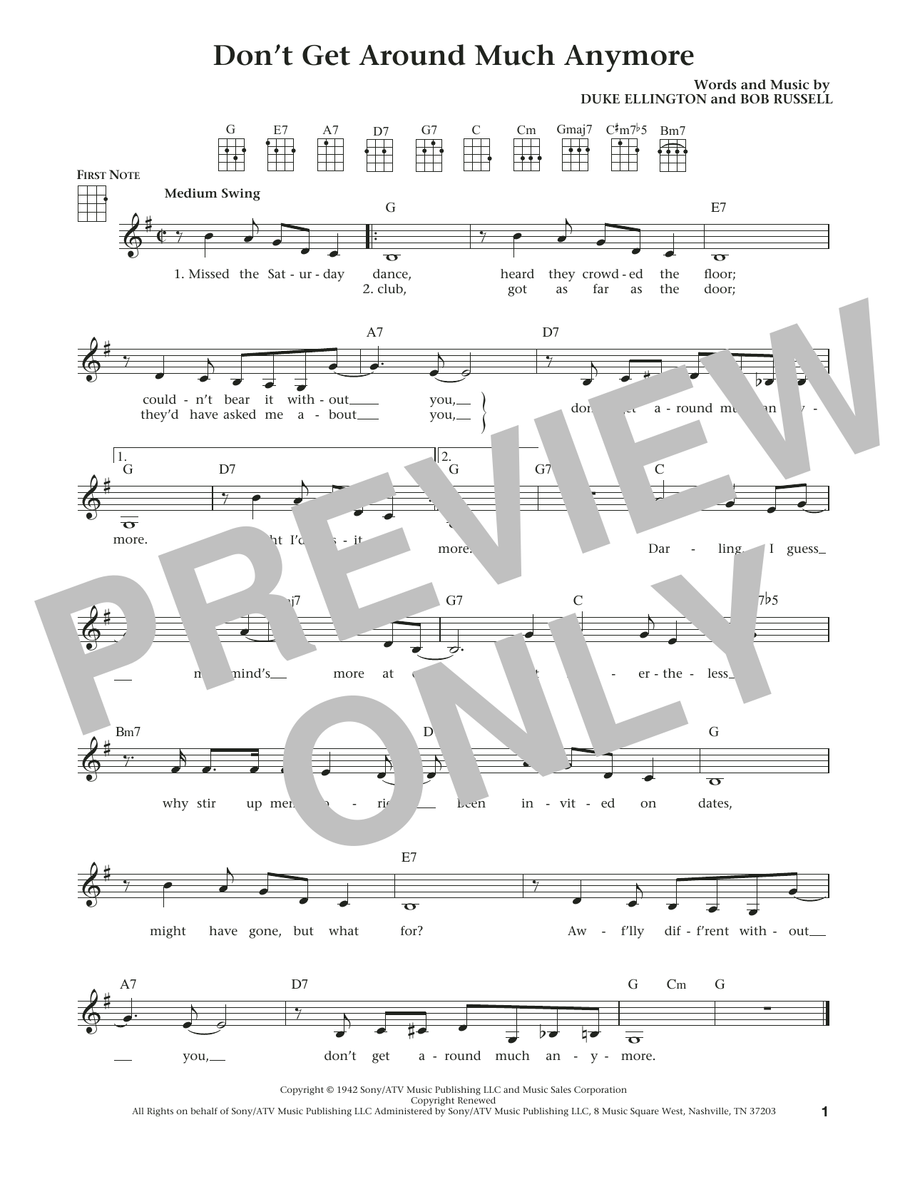 Duke Ellington Don't Get Around Much Anymore sheet music, chords, lyrics - Printable PDF for Ukulele