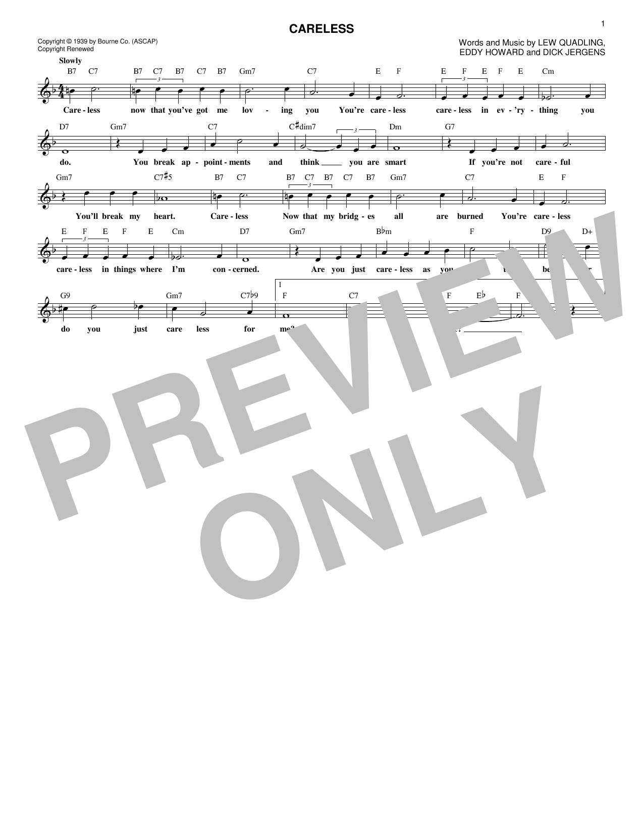 Eddy Howard Careless sheet music, chords, lyrics - Printable PDF for Melody Line, Lyrics & Chords