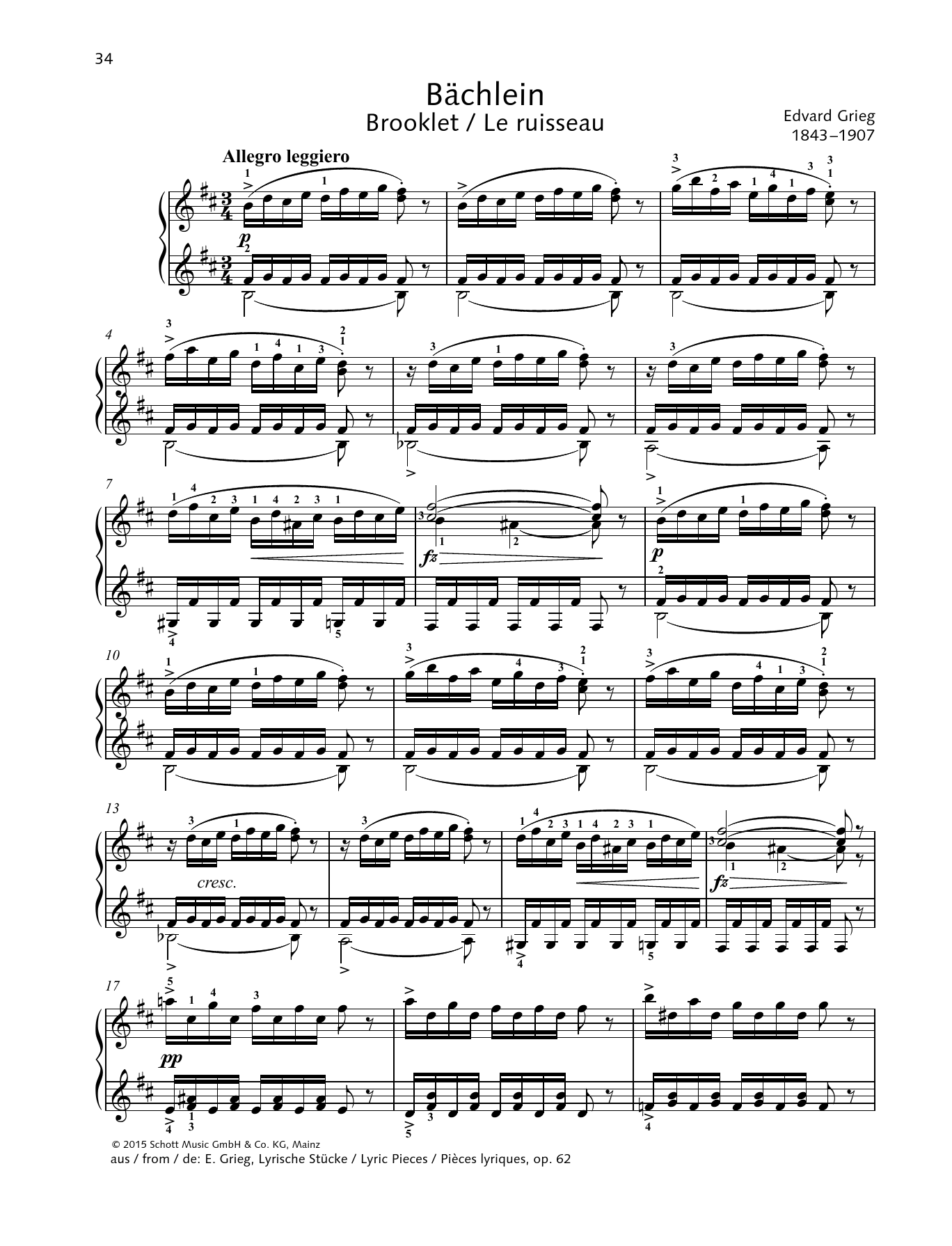 Edvard Grieg "Brooklet" Sheet Music