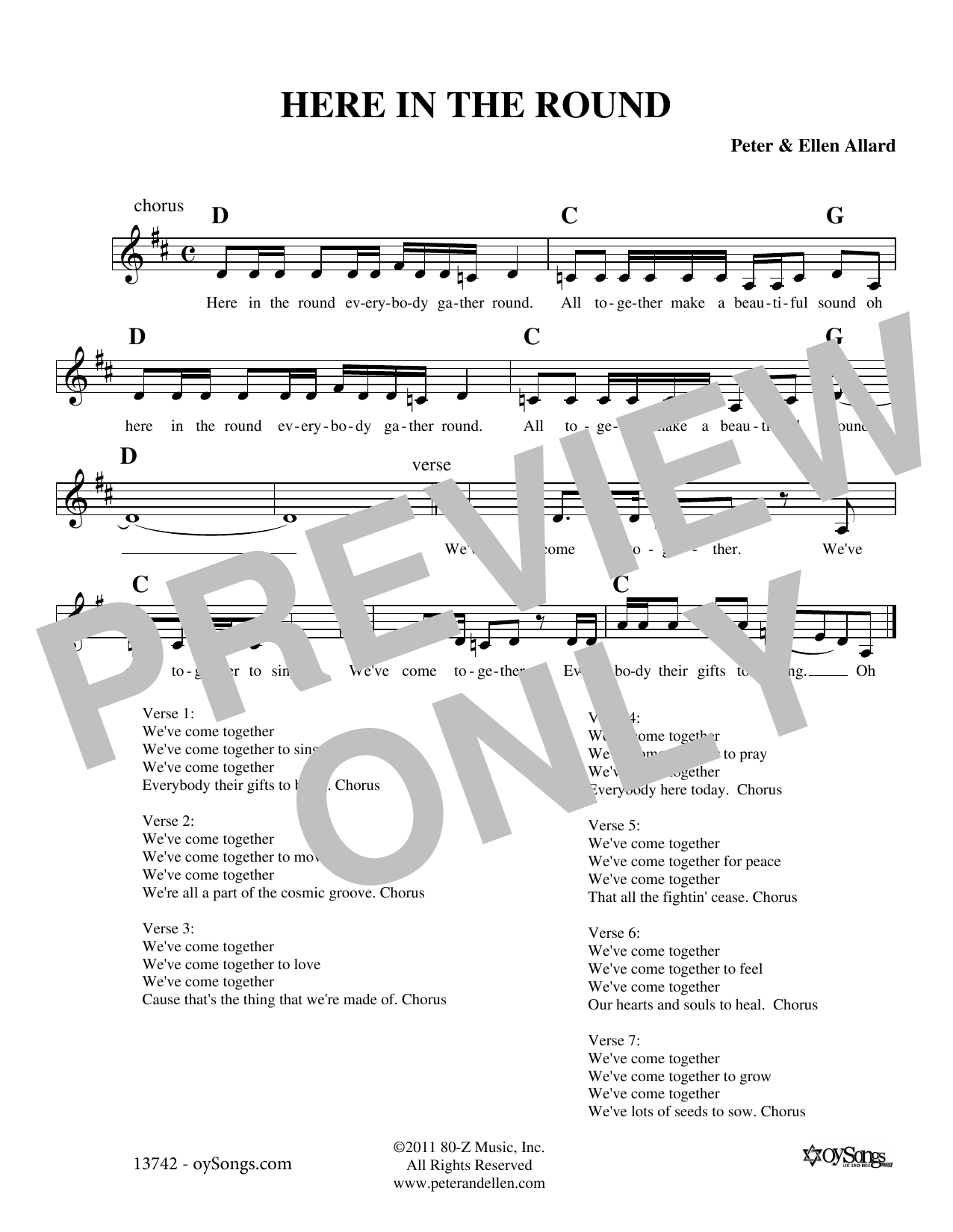 Download 1-Page Ellen Allard Here In The Round sheet music | Printable PDF Digital Notes