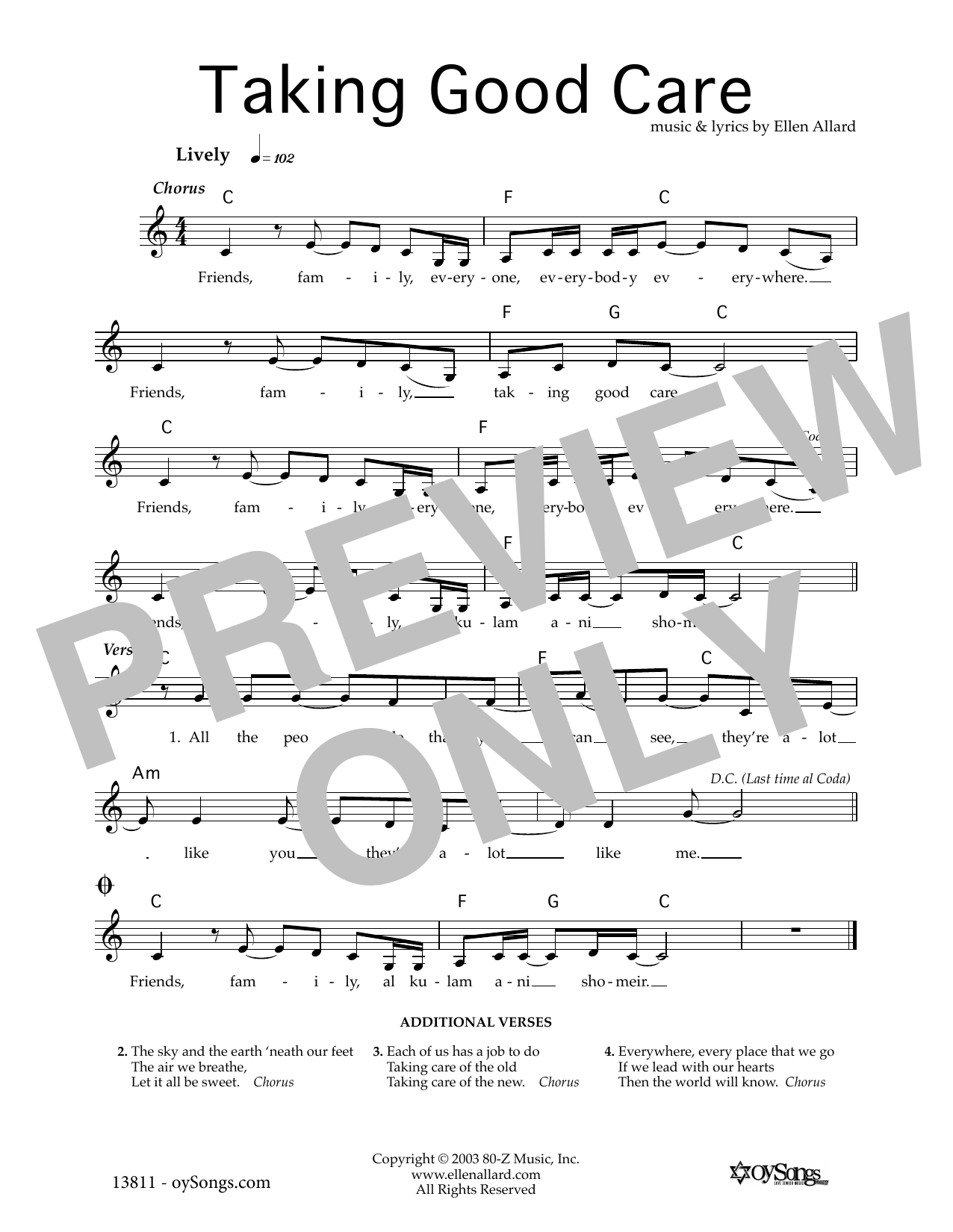 Ellen Allard Taking Good Care sheet music, chords, lyrics - Printable PDF for Melody Line, Lyrics & Chords