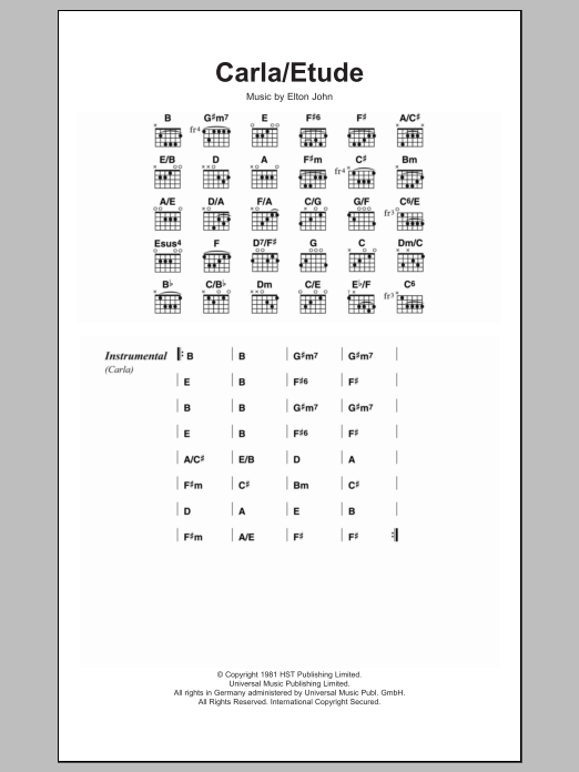 Elton John Carla/Etude sheet music, chords, lyrics - Printable PDF for Lyrics & Chords