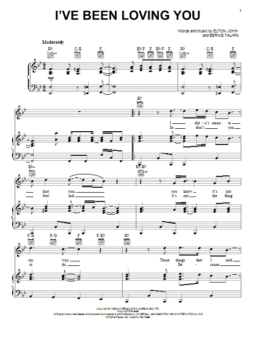 Elton John I've Been Loving You sheet music, chords, lyrics - Printable PDF for Piano, Vocal & Guitar (Right-Hand Melody)
