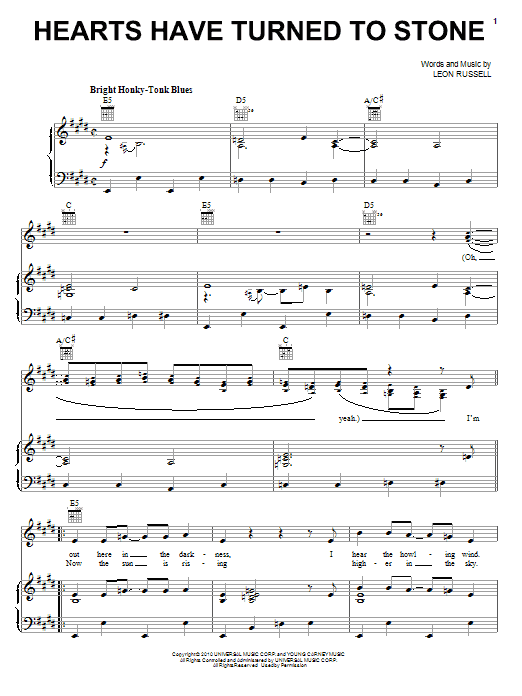 Elton John & Leon Russell Hearts Have Turned To Stone sheet music, chords, lyrics - Printable PDF for Piano, Vocal & Guitar (Right-Hand Melody)