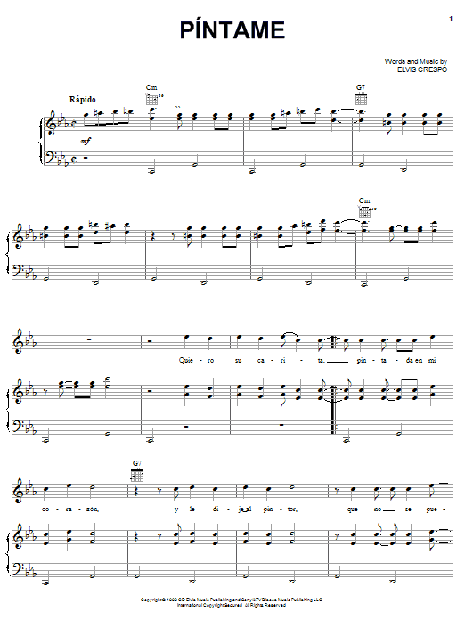 Elvis Crespo Pintame sheet music, chords, lyrics - Printable PDF for Piano, Vocal & Guitar (Right-Hand Melody)