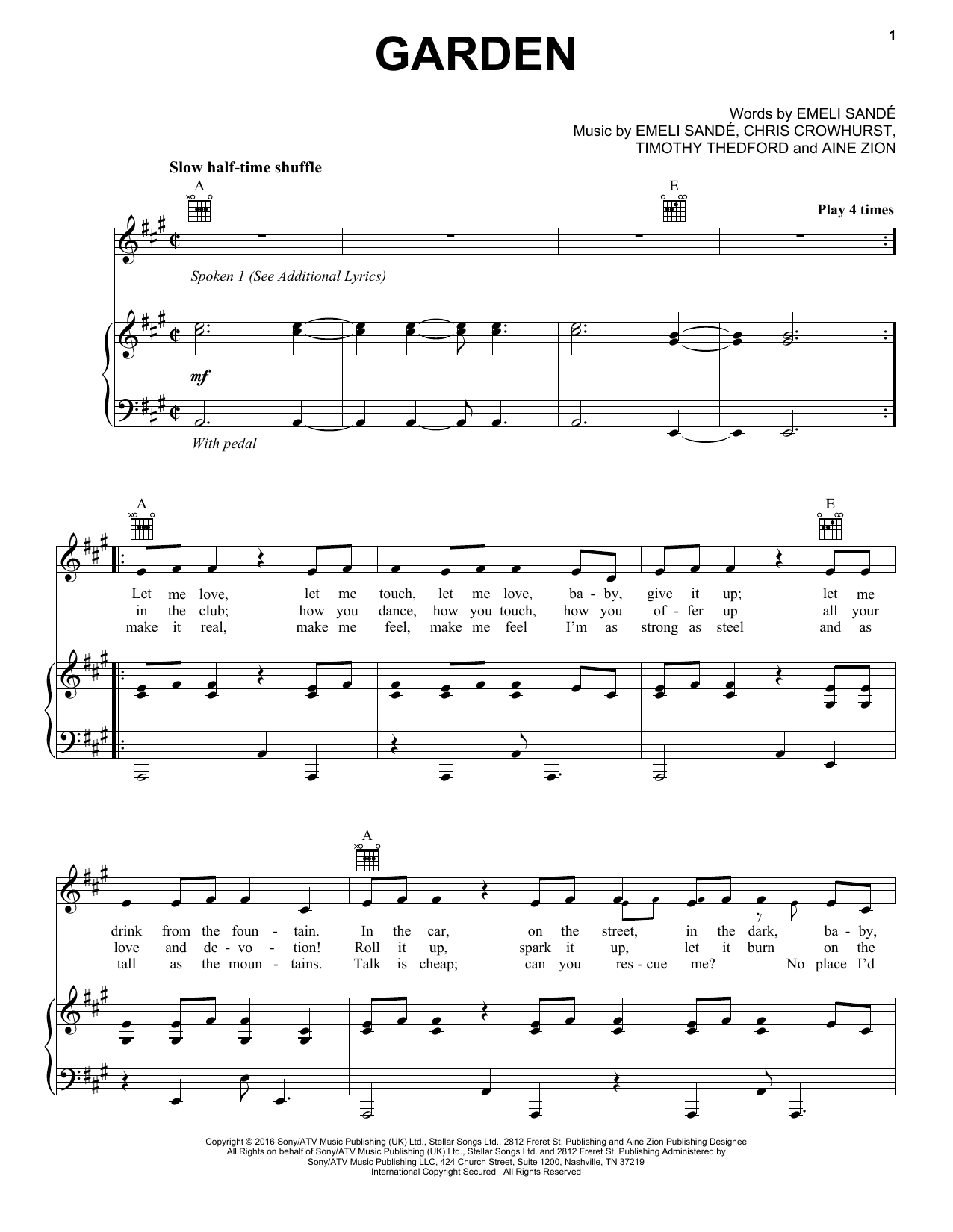 Emeli Sande Garden (feat. Jay Electronica & Aine Zion) sheet music, chords, lyrics - Printable PDF for Piano, Vocal & Guitar (Right-Hand Melody)