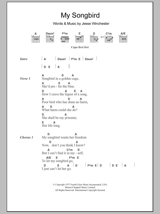 Emmylou Harris My Songbird sheet music, chords, lyrics - Printable PDF for Lyrics & Chords