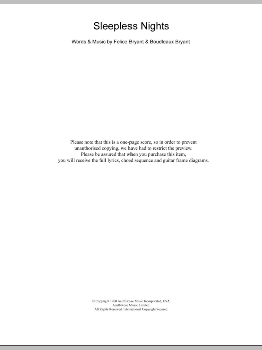 Emmylou Harris Sleepless Nights sheet music, chords, lyrics - Printable PDF for Lyrics & Chords