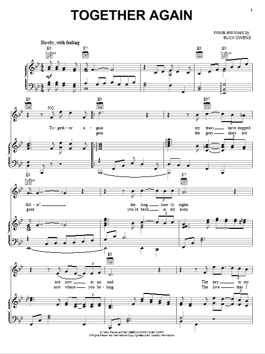 Emmylou Harris Together Again sheet music, chords, lyrics - Printable PDF for Piano, Vocal & Guitar (Right-Hand Melody)