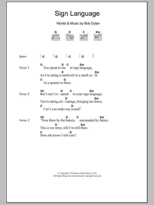 Sign Language Sheet Music Sample