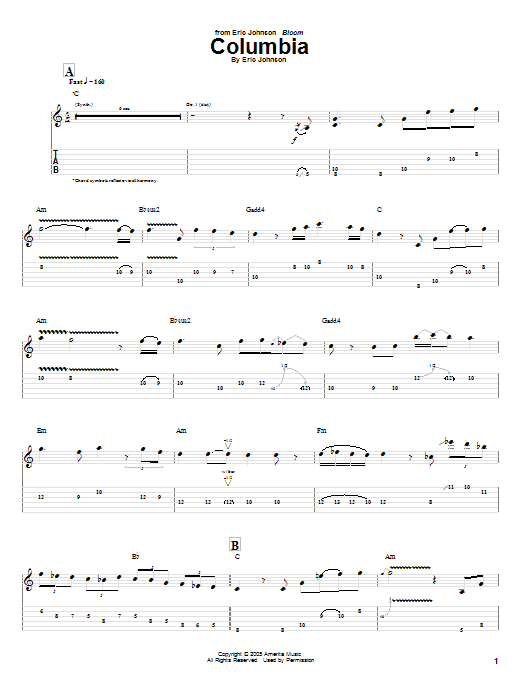 Eric Johnson "Columbia" Sheet Music
