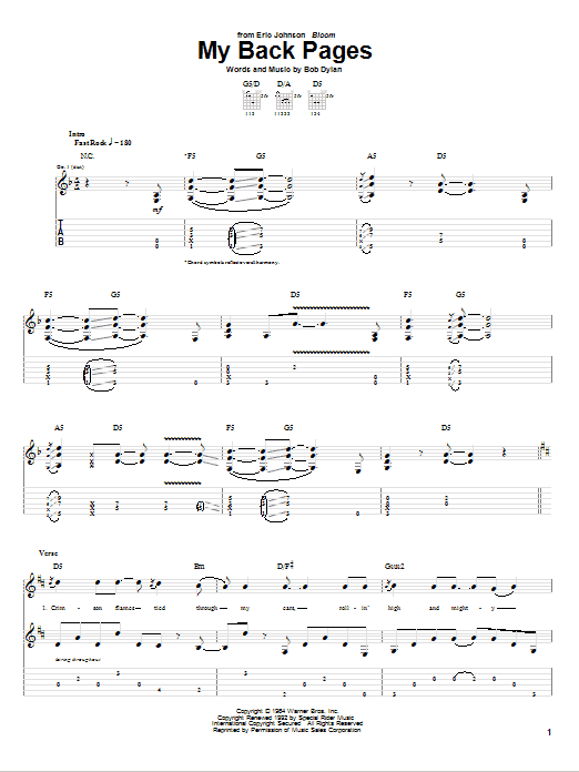 Eric Johnson My Back Pages sheet music, chords, lyrics - Printable PDF for Guitar Tab
