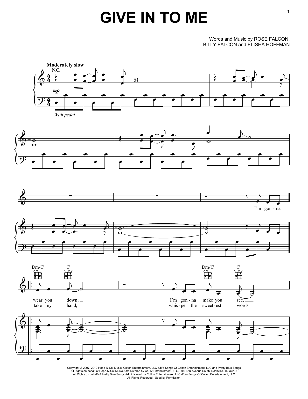 Faith Hill Give In To Me (from Country Strong) sheet music, chords, lyrics - Printable PDF for Piano, Vocal & Guitar (Right-Hand Melody)