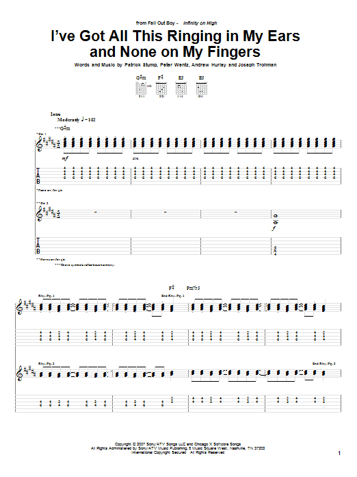 Fall Out Boy I've Got All This Ringing In My Ears And None On My Fingers sheet music, chords, lyrics - Printable PDF for Guitar Tab