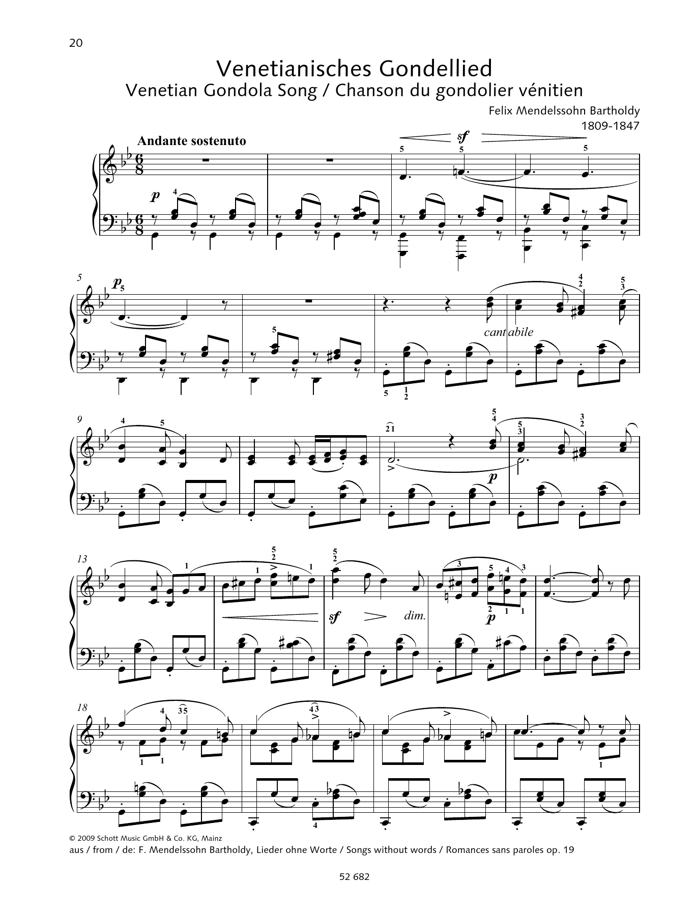 Felix Mendelssohn Bartholdy "Venetian Gondola Song in G minor" Sheet Music