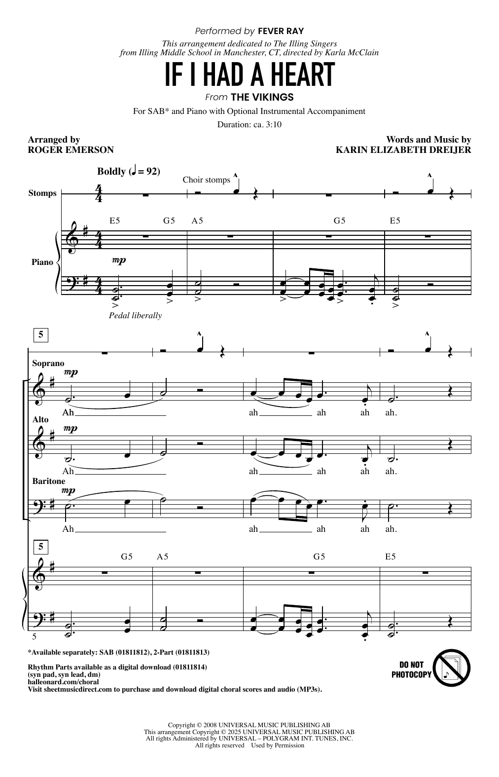 Download 11-Page Fever Ray If I Had A Heart (arr. Roger Emerson) sheet music | Printable PDF Digital Notes