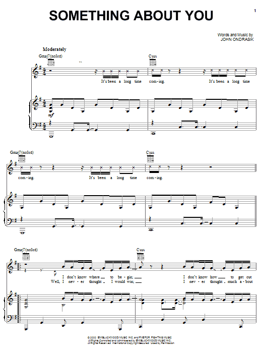 Five For Fighting Something About You sheet music, chords, lyrics - Printable PDF for Piano, Vocal & Guitar (Right-Hand Melody)