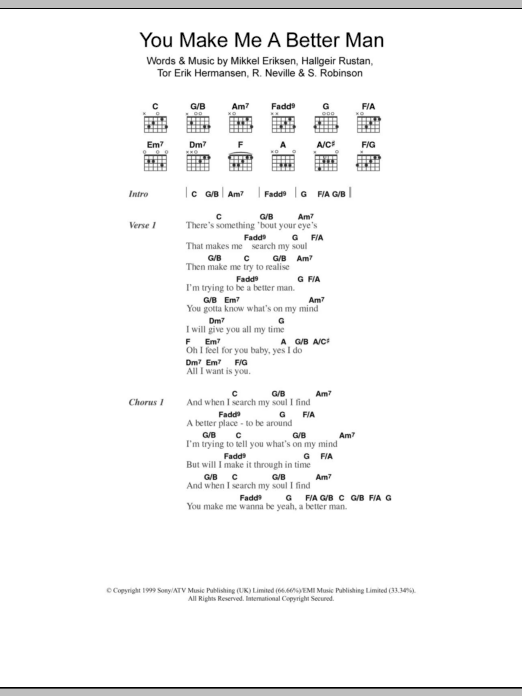 Five You Make Me A Better Man sheet music, chords, lyrics - Printable PDF for Lyrics & Chords
