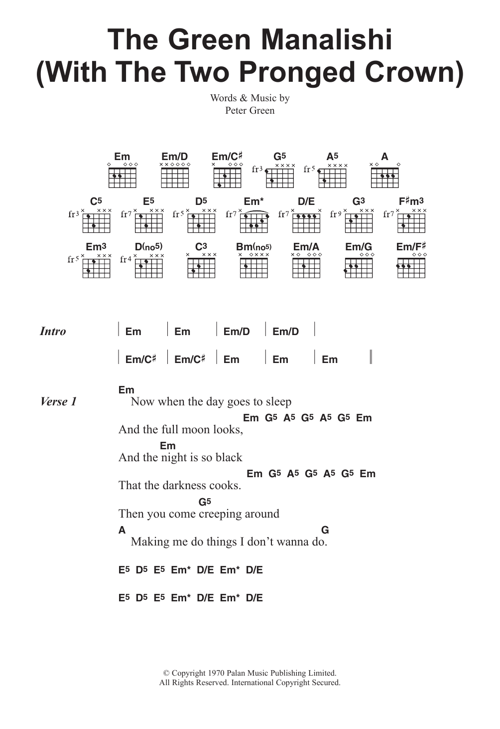 Fleetwood Mac The Green Manalishi (With The Two Pronged Crown) sheet music, chords, lyrics - Printable PDF for Lyrics & Chords