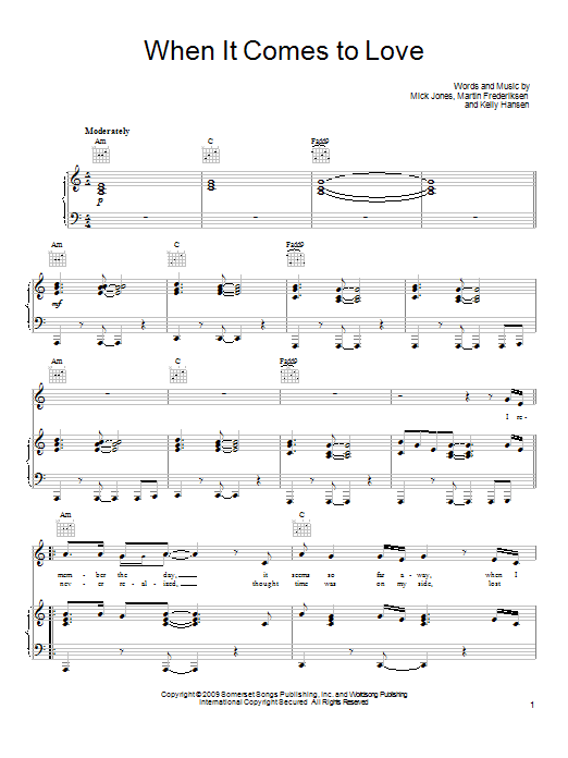 Words and Music by Mick Jones, Martin Frederiksen and Kelly Hansen