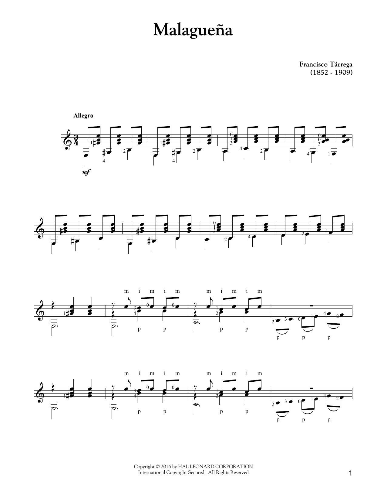 Download 5-Page Francisco Tarrega Malagueña sheet music | Printable PDF Digital Notes