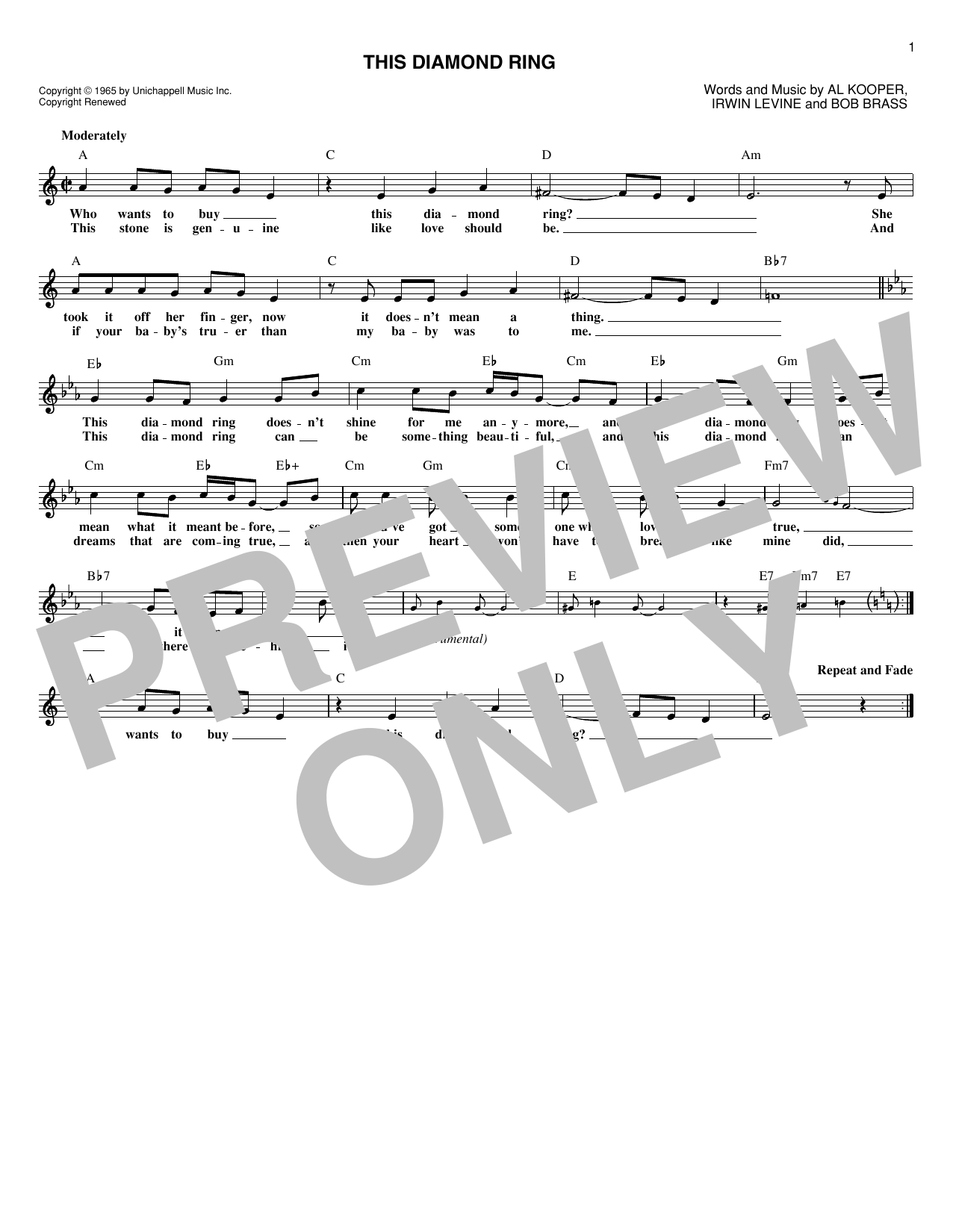 Download 1-Page Gary Lewis & The Playboys This Diamond Ring sheet music | Printable PDF Digital Notes